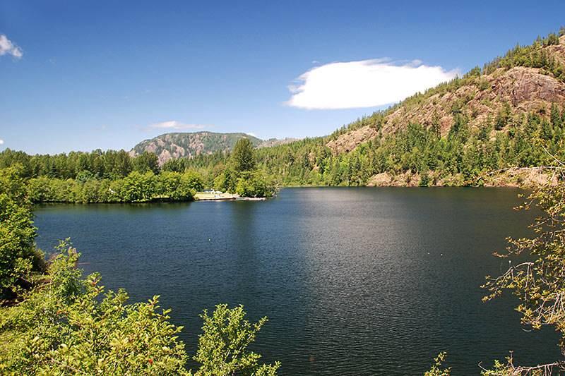 Mesachie Lake is a small but beautiful lake located just off South Shore Road, just 4-5km west of the town of Lake Cowichan. It’s probably best known for Camp Imadene which occupies most of the South-Western end of the lake. Along the North shore Mesachie Mountain rises steeply out of the lake allowing one to paddle right up against the cliff faces and rocky shore. In high water ist sometimes possible to paddle the outlet located at the North-West corner of the lake. Mesachie Lake meanes Lake of Spirits. The Cowichan First Nation believed that an old man – called the Mesachie Man in legends – lived in the lake and that anyone trespassing on his territory would be drowned in the lake’s waters.